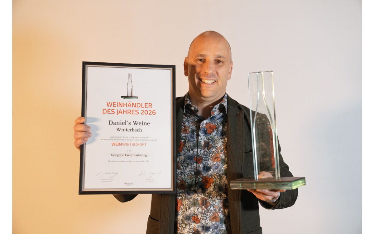 In der Kategorie „Eventmarketing“ wurde Daniel’s Weine aus Winterbach geehrt. Das Unternehmen von Daniel Hasert hat laut Jury in den vergangenen Jahren eine außergewöhnliche Erlebnis- und Veranstaltungskultur etabliert – von Winzerabenden über After-Work-Formate bis hin zu mehrtägigen Kooperationsevents. Damit gelinge es neue Zielgruppen für Wein anzusprechen und dem stationären Fachhandel eine zeitgemäße Relevanz zu geben.