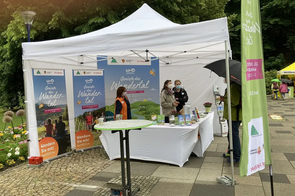 Der Ausflug ins hessische Bad Wildungen zum diesjährigen Deutschen Wandertag war ein voller Erfolg: „Die Menschen haben sich breit über Fellbach und das gesamte Remstal informiert und freuen sich schon heute auf den 121. Deutschen Wandertag bei uns“, berichtete Werner Bader, der Geschäftsführer von Remstal Tourismus e.V. Er war gemeinsam mit Vertreterinnen aus dem Projektteam der Stadt Fellbach und dem Schwäbischen Albverein nach Bad Wildungen gereist, um den Gästen am Remstal-Stand der Tourismusbörse das Remstal zu präsentieren.